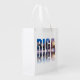 I own a lot of reusable grocery bags, but this one holds its box shape and simply stands up on its own even if there is nothing in it. Its stiffer than your regular reusable bag too, and the material is water resistant. I poured water on the exterior and it didn't penetrate inside to the other side. I'm buying a couple more. Wish I knew how durable these bags were or I would have purchased a few more with my initial order. I also like how it folds and buttons up when not in use, making it easy to put into a handbag or luggage. I haven't used this bag yet, as I purchased it for travel use, like when you're at the airport and need to small sturdy bag to place any airport purchases in, like food, souvenirs etc. I can tell you when you first see this bag, it looks very cheap, but after closer inspection of the material and the seams its a very sturdy reusable bag. I tested it out by putting some really heavy objects inside and I could not observe any stress to the bag at all. Another thing I like about it, is the fact the medium size that this is makes it easy to just carry it in your hand without the bottom of the bag scraping the ground, like most other bags do when you're short. That alone, deserves 5 stars. I just wish there were more colors to choose from! The PDX Airport Carpet printing looks just like the photo, and using this bag during travel might be a conversation piece when/if a native from Oregon happens to see it.