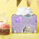 The graphic design is a simple stripes pattern with purple and white stripes, balloons, and a round picture frame for you image.