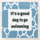 Cool blue pattern and the text: It's a good day to go swimming. To customize, click personalize and change the text to your liking.