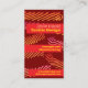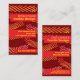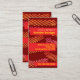 A colorful textile design in shades of red, brown. and yellow. It is captioned with name, address, phone, email, concepts and manufacturing (tag line). Easily personalized and edited.