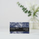 A business card template with an attractive photo background (which can also be changed). Details on a black band. Company details and address on the front with name and other contact details on the back. Ready to be customized with your details.
