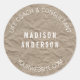 This simple minimalist textured paper sticker design is both modern and rustic, with the crisp white lettering on the simulated crinkled kraft paper. Personalize all three areas of lettering using the text templates and create the perfect custom round sticker to dress up your envelopes, invoices and more.