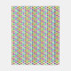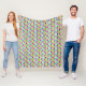 Bright and colorful fleece blanket with a pattern of textured apples on a pale yellow background.