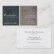 A business card that will fit many occupations and businesses including a salon or spa, massage therapist, nutritionist or any retail establishment. Slate blue and taupe colors make the two panels watermarked with a subtle damask pattern. All text is customizable. Perfect as an appointment card. Available in matching products.
