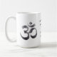 Classic white, large 15oz. coffee mug with textured dark gray Om symbol printed on both sides. Ample room on the front of the mug to add text to make it yours, or it can be removed. The text is a dark gray color. Easily change text using the Template provided. The mug is also available in a smaller 11oz size. See "About This Product" at side for additional information.