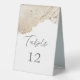 wedding table tent with menue and table number in textured faux gold foil and the elegant script font in a combination with sans serif. Beautiful luxurious details card for year round wedding. Come and see the whole collections in our store for a complete wedding experience.