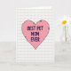 This greeting card features a large pastel pink heart centered on the front, its edge slightly uneven as if drawn with a quick, affectionate hand. Across the heart, dark purple rounded lettering sits prominently in the middle, reading as a direct note of appreciation that feels like a close friend speaking softly. The thick letters have gentle curves, giving the message a warm, easygoing tone ❤️. Behind the heart, a pale background shows a faint texture with tiny, evenly spaced grey shapes that add interest without stealing attention. Plenty of open space surrounds the heart, making the pink and purple stand out like a small romantic gesture left in plain sight. The overall look suggests closeness and gratitude through the tender contrast of soft pink against deep purple, like a hug turned into color 🌼. The heart remains the clear focal point, with the purple text centered neatly across it and the subtle grey pattern lightly scattered in the backdrop.