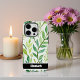 This premium mobile device protector showcases an exquisite textured impasto oil painting of lush greenery. Elegant raised leaves and delicate stems in varying shades of vibrant and soft greens create a refreshing 3D, tactile surface against a clean white backdrop. Personalize this unique smartphone accessory with a name like "Elizabeth"; you can easily remove the name and any other elements you don't like from within the design tool, crafting your perfect bespoke mobile phone protector.