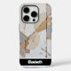 This premium mobile device protector showcases a subtly textured impasto oil painting. Raised geometric shapes and irregular blocks in soft neutral tones of white, cream, beige, taupe, and light grey create a sophisticated 3D tactile surface. The distinct brushstrokes add an artistic touch. Personalize this unique smartphone accessory with a name like "Elizabeth"; you can easily remove the name and any other elements you don't like from within the design tool, crafting your perfect bespoke mobile phone protector.