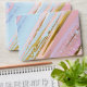 Pink and blue textured background, painted with large brush strokes, decorated with gold foil. Grunge Texture.
