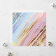 Pink and blue textured background, painted with large brush strokes, decorated with gold foil. Grunge Texture.