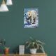 This image is a textured painting of a polar bear walking through a snow-covered landscape. The artwork features thick, visible brushstrokes in an impasto style, which gives the polar bear's fur and the surrounding snow a three-dimensional feel. The color palette is predominantly white and various shades of blue, with subtle hints of yellow and orange in the bear's fur.