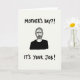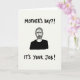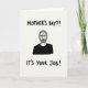 This card shows a monochrome illustration of a mature man centered on a softly textured, pale background, drawn with detailed linework that shapes his close-cropped hair and full beard. He wears a solid black top that creates strong contrast, while his furrowed brow and slightly downturned mouth give him a dry, knowing look, like he’s sharing an inside joke with the viewer ❤️. The mood feels like teasing friendship more than harshness, as if the character is gently nudging someone across the kitchen table. Near the top, uppercase text reads “MOTHER’S DAY?!” in black, set above his head with plenty of open space around it. Along the bottom, a second line in uppercase black letters states “IT’S YOUR JOB!”, anchored low and wide beneath the portrait. The large areas of pale space around the figure and words make the dark shapes feel even sharper, like a comic panel with a pause built in. Fine shading and small texture marks add depth to his face and neck, while the overall layout stays simple and direct 🌼. The figure sits squarely in the center, with the top line hovering above him and the bottom line stretching across the lower edge in dark lettering.