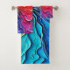 I ordered these towels because I am getting ready to stage my house for sale and wanted some really pretty towels to show off the bathroom. These are an absolutely perfect match for the teal walls and I could not be more pleased. Not only do they look beautiful, they also seem to be very good quality. They are different than any other towels I've had, as the surface fibers are not looped. I love that because I have never liked how most towels have loops that snag and pull no matter how careful you are. I pre-washed them and they came out beautifully. The towels are generously sized and they don't feel flimsy at all. I did not read the description well enough to understand I was paying as much as I was paying for just exactly what was pictured: not a set of two, but a single towel, hand towel and washcloth, so they are way more expensive than I thought (which was a lot, considering). However, I still love them enough that I went ahead and ordered a single additional bath towel so that I would have an actual set, but will need to buy a couple of solid color washcloths. Pricing is weird, because a single wash cloth is priced higher than a large bath towel?? Anyway, if you can afford them, these towels are fantastic. I would never pay this much except to show off a house for sale, but now that I've done it I will love them in my new home as well. Gorgeous! Vibrant Colors and exactly as pictured,..maybe evern better!