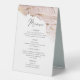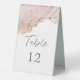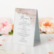 wedding table tent with menue and table number in textured faux rose gold foil and the elegant script font in a combination with sans serif. Beautiful luxurious details card for year round wedding. Come and see the whole collections in our store for a complete wedding experience.