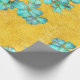 Textured floral pattern. Teal colored flowers with golden streaks and rust on gold leaf textured paper. Beautiful artistic floral background. Vintage watercolor background.