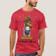My 11 yo wore adult XL (5’7” 165#). The 8yo is small framed. She wore adult small and tied it in the back. Grandma wore adult large with long sleeve shirt underneath. Tall girl adult medium. Dark haired male adult large. Good quality dark Heather gray, Gildan brand shirt. -it was next up from basic choice and cost about $20 per shirt. Not too thick or thin. Washed and dried well, no major shrinkage. Not see-through. Can wear a bra under it fine. Screen print is just as shown and well done, front and back.