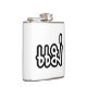 Well made flask, a little better than I had expected. Flask came in clear plastic box which gave it a nice presentation when I took it out of the zazzle packaging. Image is not printed on flask but on sticker. Don't know how this will hold up I haven't used it yet. This would make a Great gift! I plan to purchase more for friends! Cheers. I thought a little brighter than computer. Very crisp, writing wasn't