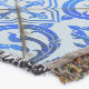 A quality printed throw has its advantages. This is a much finer weave throw than its loopier cousins, and though lighter, it is worth the investment for custom room accessorizing. The back is much prettier than the typical brown, and the fringe on the long sides very vivid, the selvage nicely done. Before photographing, I washed the throw in cold water, delicate, with a thicker woven throw the same size. On tumble dry low, this throw was dry in half the time as the other. This is a very practical quality if you use throws for furniture covers or to wrap up in frequently. The sleekness of the fabric makes it a great layer for accenting or protecting without the feeling of sitting on too much stuff. Perfect for napping or when you feel a light chill coming on. The color printing is beautiful and on this fabric, matched the design and color of my Photoshop image. This is an advantage for blending room fabrics and colors. The fringe on the short sides prints the colors from the design image and therefore varies from the side fringe. I streaked a white fractal line through the plaid pattern to give the illusion of weaving. This printed as crisp as an illusory thread, and put some white in the short side fringe, showing another advantage of print vs loomed- for artistic purposes, line lines, detail, and color integrity can be planned and preserved. My loomed throws have color limitations and more of a needlepoint texture. Print throws reproduce an exact image. The throw felt a little stiff straight out of the package, but this went away in the first delicate wash. Of course I searched the wash water for ink or bleeding and there was none.