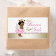 Thank heaven for little girls baby shower water bottle labels with cute ethnic angel on a pretty pink and gold pearl background. You can add the text of your choice. These are not waterproof.
