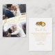this elegant thank you three photo collage geometric gold wedding Note Card is a beautiful and unique way to express your gratitude to your loved ones for sharing in your special day.