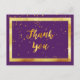 An elegant thank you card for a 50th birthday celebration. A purple background color and a faux gold frame. With a golden confetti rain. On front a hand lettered style script and the text: Thank You!