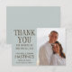 A very modern, fun and casual thank you flat card on invitation card stock in natural earthy colors to coordinate with your beach wedding photo. Perfect for thanking your friends, family and other guests to who attended a special destination wedding. Beautiful shades of very light grey blue and brown, with easy to read, modern and stylish text. Sample photo is commercial use friendly creative commons from stockvault. Upload your own couple photo and click the handy customize button to resize or reposition as necessary.