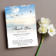 Nature sympathy heavenly thank you funeral memorial card with white overlay and a beach seascape, water scene.