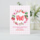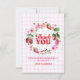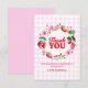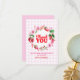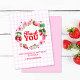 This berry sweet thank you card design features a wreath of watercolor strawberries and florals against a pink plaid background, the text reads thank you in big bold red letters. You can customise the text below and the back of the card is left blank to leave space for a hand written message. This design has a color palette of red, pink and green. See the whole matching collection.