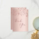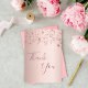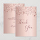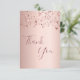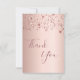 A rose gold faux metallic looking background. With rose gold, copper colored dripping sparkling stars. On front large dark rose gold colored hand lettered script and the text: Thank You.