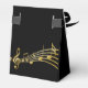 An elegant black background and decorated with faux gold music notes on front and back. Golden hand lettered style script and the text: Thank You. Template for a name.