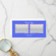 A blue thank-you flat photo card for 2 photos, with swirls and little red hearts around the frame. Customizable text reads: Thank You - Your personal message here, Dan & Sue.