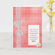 White sheer bow and ribbon on red and white gingham background for thank you.
