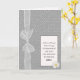 White sheer bow with daisy on white polka dots and gray background for thank you.