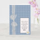 White sheer bow with daisy on white polka dots and blue background for thank you.