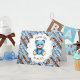 Sweet thank you cards that you can personalize for a boy's baby shower. This is in the crocheted teddy bear theme in blue and brown.