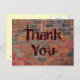 Thank You postcard Brick wall photograph. Grunge font. Postcard can be customized with your own message. Personalize with your own name and information. Customize and Personalize the text on this product for any occasion. Postcards are perfect for mass mailings or whenever you need to mail a large number of announcement or party invitations. Discounts available when purchased in bulk.