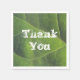 Add a special touch to your appreciation meal or snack with these paper napkins featuring a bright green leaf and the words "Thank You". The green leaf photo captures the detail of a single leaf with lines moving diagonally across the napkin. The words "Thank You" appear in the center in white font and can easily be customized to suit your needs.