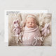 Celebrate the birth of your newborn baby with this brush Script lettering design complementing the cute baby image in the background. You can personalize the baby image and the text to your choice.