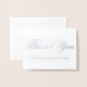 Thank You Note Card in the small 4-inch size is shown in white with a silver foiled print.