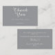 This elegant script business thank you card is built for small business owners who want their packaging to do more than say thank you. The front features a flowing calligraphy "Thank You — your support keeps us going" on a cool gray background with your website URL. The back tells your customer their next order is already discounted — with a boxed coupon code and a gentle five-star review request.