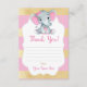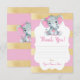 Thank You Card Girl Elephant Shower Gold Pink