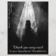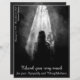 This Thank You card has a dark modern and elegant design with a white border around the front and back. Person goes into the light - goodbye my dear