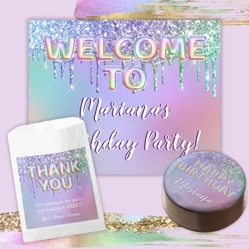 Pink Purple Rainbow Glitter Drips Birthday PartyDesigned by Denise Witmer