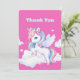 Thank You Cards to a magical birthday party with an adorable unicorn with wings in the clouds.
