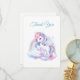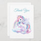 Thank You Cards to a magical birthday party with an adorable unicorn with wings in the clouds on a rainbow background.