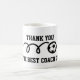 Thank you coach | soccer ball coffee mug. Sports design for coaches coaching a soccer team. Customizable text and background color.