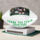 Green Thank you Coach Team Name and Team Photo Football. The text is a trendy font a on white background. Personalize with your coach name, team name and year. You can change any text on the football or erase it. A great gift for a coach! Add a team photo and get the team to sign the non-designed areas of the ball with a fine point permanent marker for a wonderful keepsake.