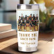 Thank you Coach Team Name and Team Photo Insulated Tumbler. Personalize with your coach name, team name and year. You can change any text on the tumbler or erase it. A great gift for a coach! Add a team photo and get the team to sign the non-designed areas of the tumbler with a fine point permanent marker for a wonderful keepsake.