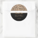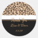 This large round wedding thank you sticker is shown in a black and safari leopard print.